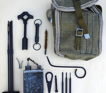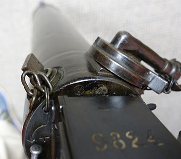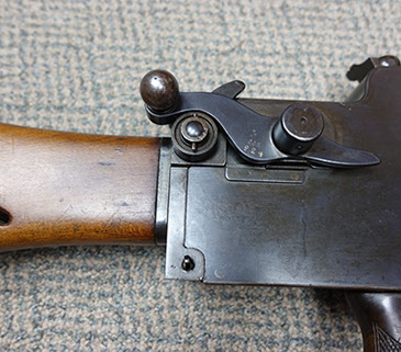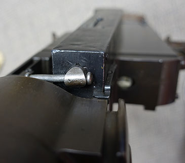 This 08/15 Maxim was the “portable” machine gun used by the Germans in WWI, along with the heavy 08 Maxim. Both guns functioned the same and used the same barrels, the same locks, the same belts and 8mm Mauser ammunition. Yet this machine gun could be carried and operated by a single soldier. Because of its portability, it proved a lethal enemy for US soldiers, so each captured Maxim quickly became a cherished war relic. This Maxim was registered in the 1968 Amnesty as serial number 9824-5020, using the 9824 serial number on the receiver and the 5020 serial number on the lock. See photos below. As the photos show, it is in very good condition with much of its original bluing. It fired flawlessly, using an original 250 rd Swiss Maxim steel belt, which will be included. Swiss Maxim belts are very easy to load by hand, unlike the German Maxim cloth belts. A video is available of this gun shooting, just email sales@fullautoclassics.com for it. It fires 8mm Mauser ammunition, the same cartridge used in the German 98 Mauser bolt-action rifle issued to most of that nation’s soldiers in WWI and WWII. This ammunition is easy to acquire and easy to reload if you choose to do so. The history and operational instructions of these Maxim water-cooled machine guns are well presented in Dolf Goldsmith’s book: The Devil’s Paintbrush. A copy is included, as is a Russian 1910 Maxim Gunner’s Kit, which has several useful tools and a spare Maxim mainspring for the lock. $12,500. Visa/MC acceptable. Class 3 dealer since 1978. Trades considered, even non-functioning or DEWAT machine guns.